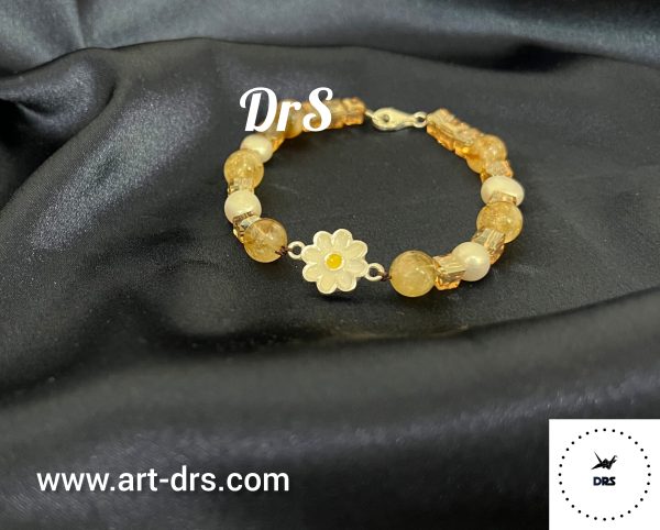دستبند سیترین و پلاک نقره بابونه