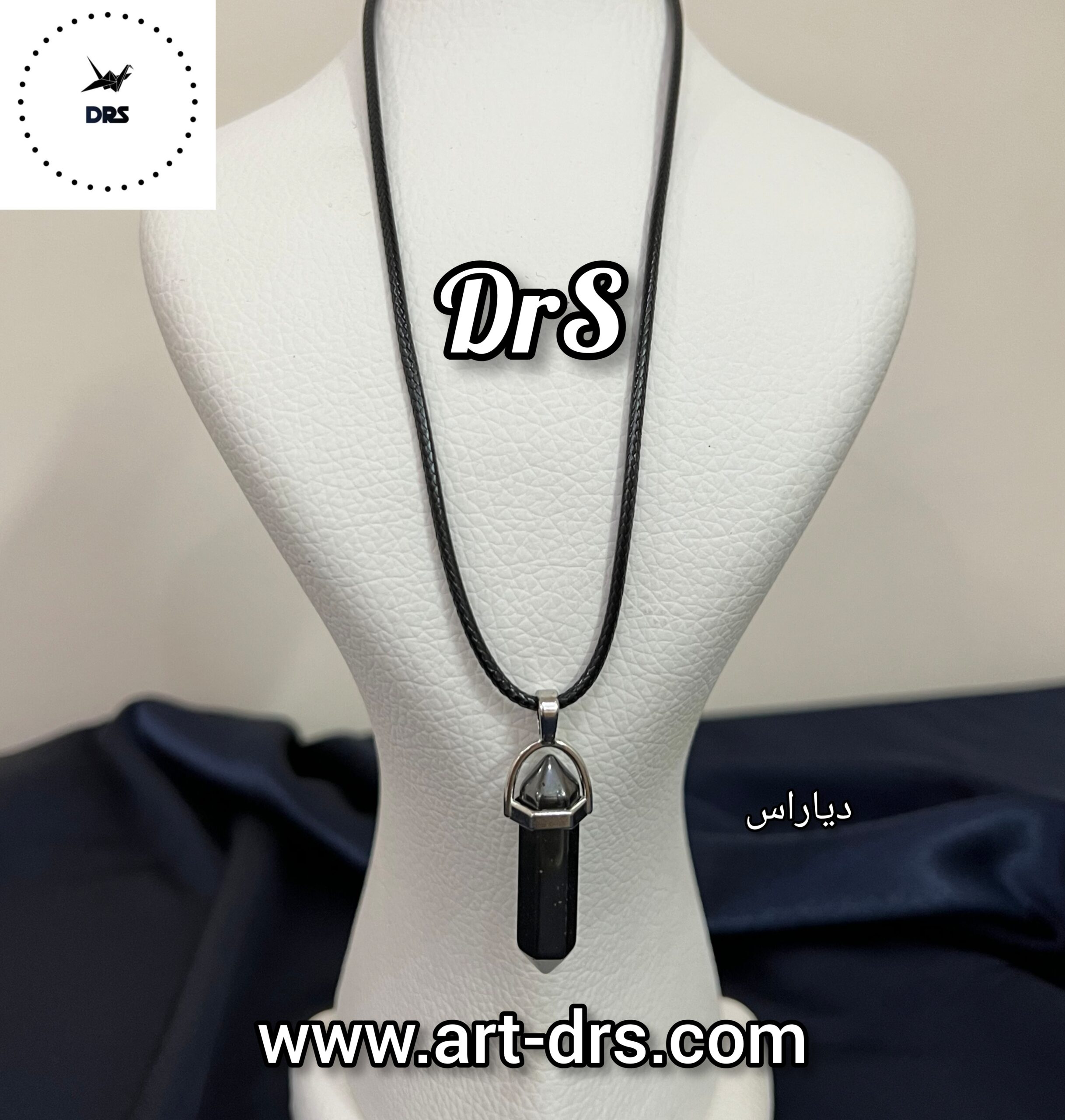 گردنبند اونیکس منشوری شکل با بند چرم