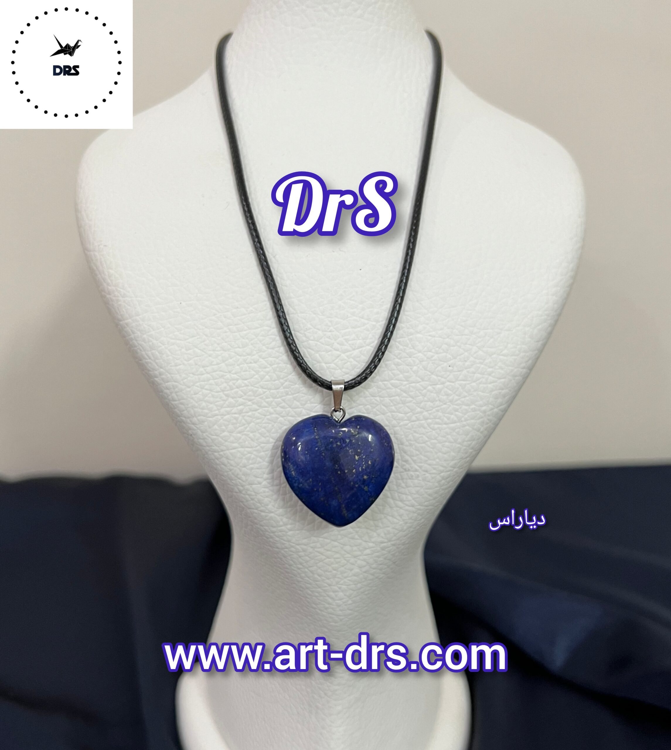 گردنبند لاجورد قلبی شکل با بند چرم