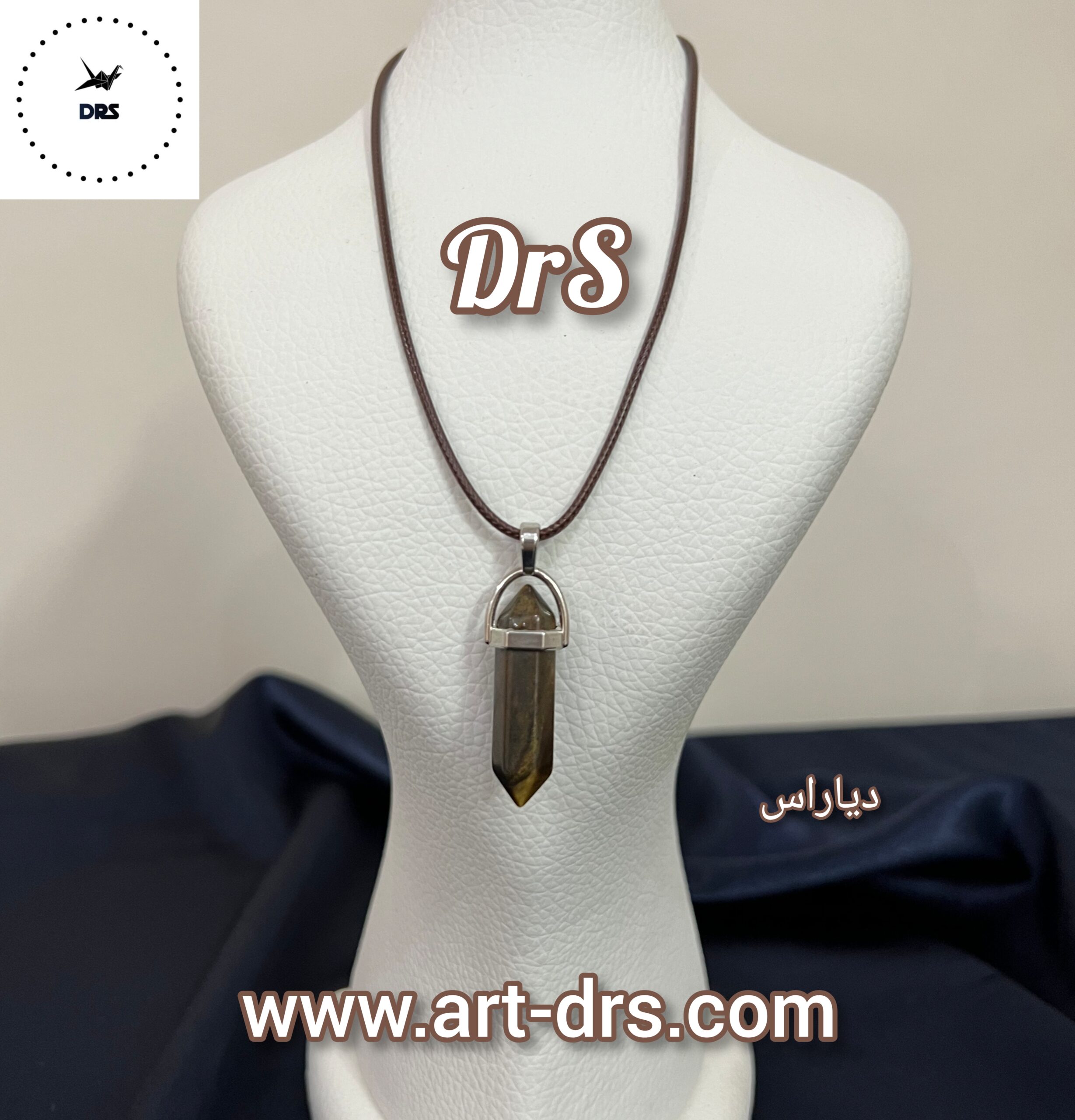 گردنبند چشم ببر منشوری شکل با بند چرم